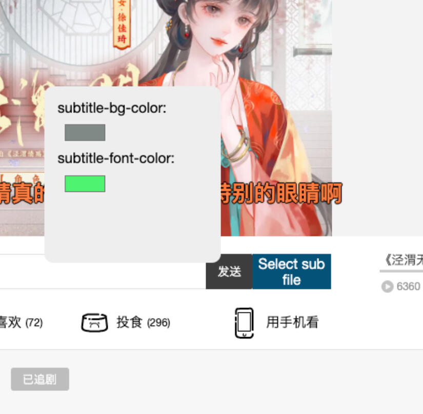 Install the Chrome extension “Audio Drama Subtitles Loader” by zhufree. A new blue box that says “select sub file” will now appear on the right side of the Missevan website audio player. Click on the box and choose the corresponding sub file for the episode then add it to the player.